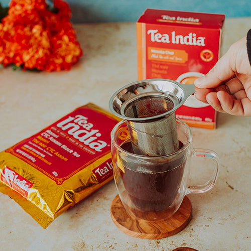 Add one teaspoon of loose tea. Add freshly ground or premixed chai spices (masala) along with the tea if you're looking to make masala chai and let it brew for 2-3 minutes.